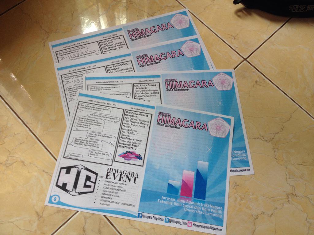 Adm.News - Himpunan Mahasiswa Ilmu Administrasi Negara kembali segera akan menerbitkan sebuah media visual, Buletin Himagara. Buletin tersebut akan diterbitkan oleh bidang DAIN (Data dan Informasi), bekerjasama dengan bidang KPK (Kajian Pengembangan Keilmuan) dan bidang Mikat (Minat dan Bakat). Buletin Himagara ini akan dibagikan besok, Kamis dan Jum'at (26-27/3/2015) untuk semua angkatan aktif 2012, 2013, dan 2014.